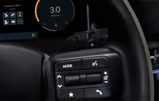12.3” HD curved display with capacitive touch, AM/FM radio, USB-C multimedia input, Bluetooth® with multi-connection, navigation and smartphone connection