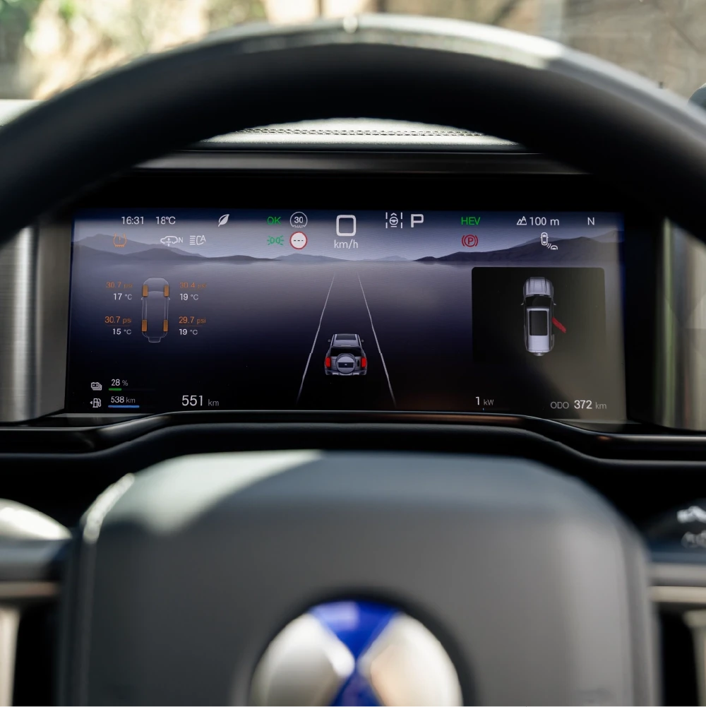 The panoramic roof fills the cabin with natural light, creating an open and uplifting atmosphere, while its built-in electric sunshade helps reduce heat and keeps the interior comfortable in any weather